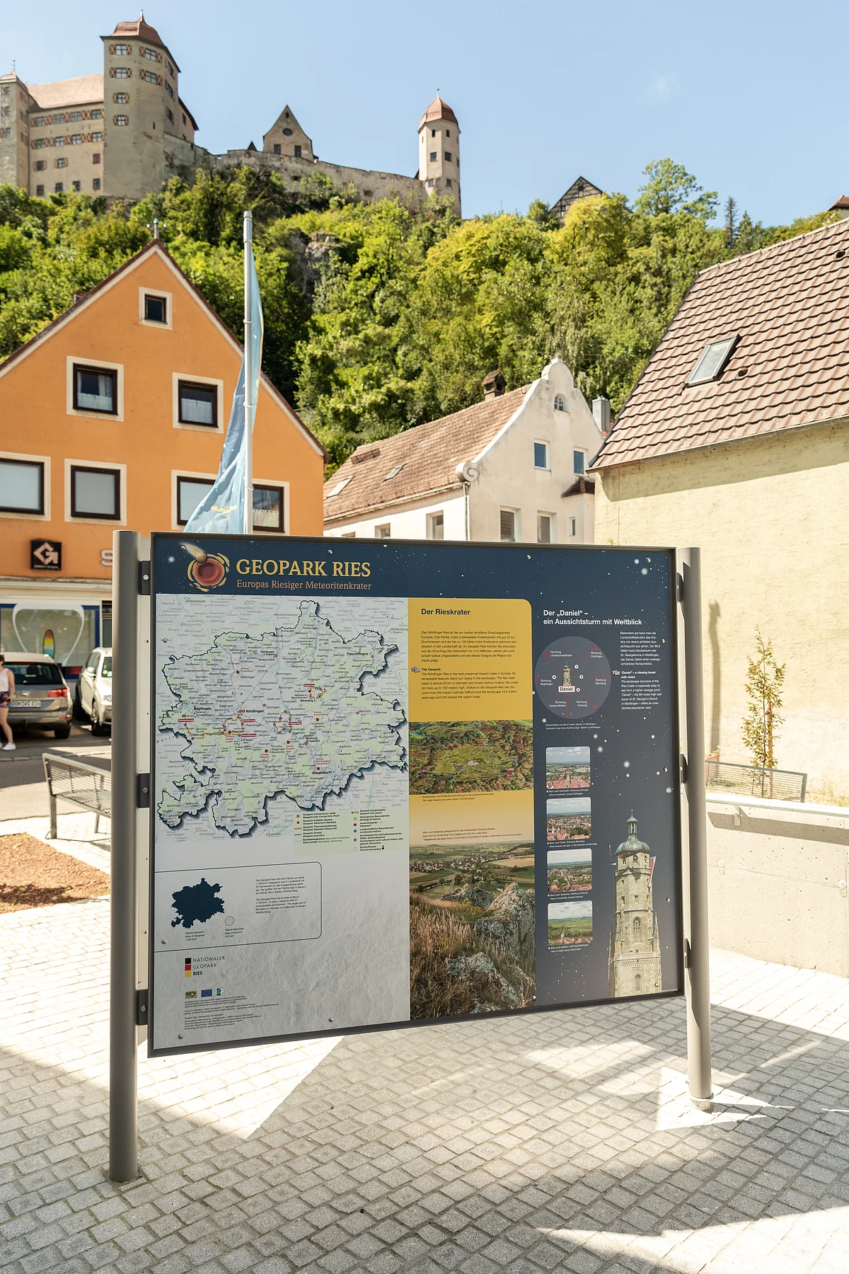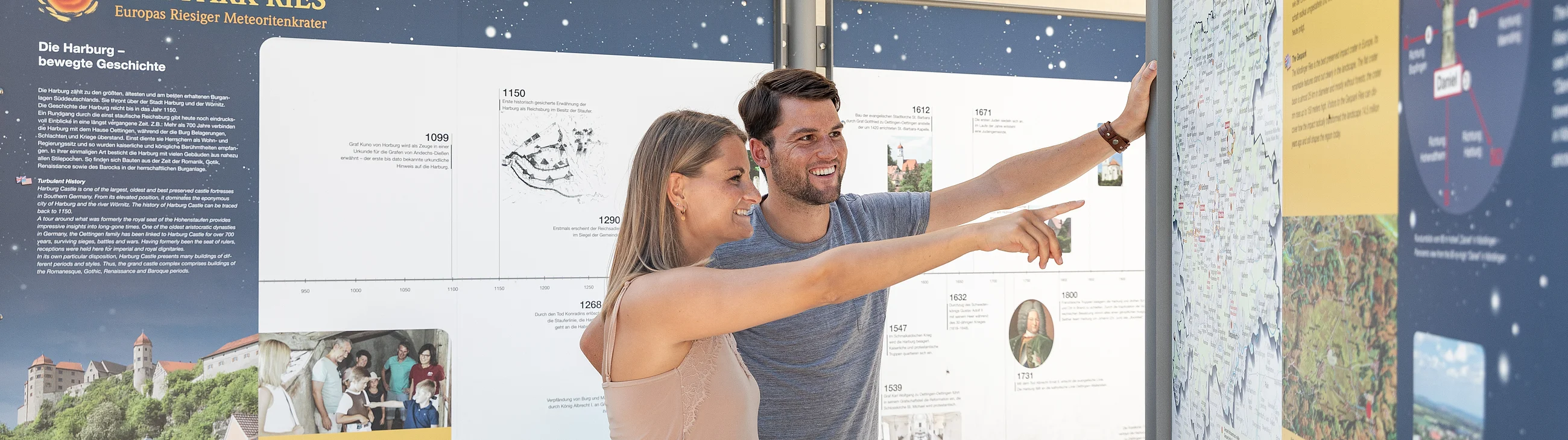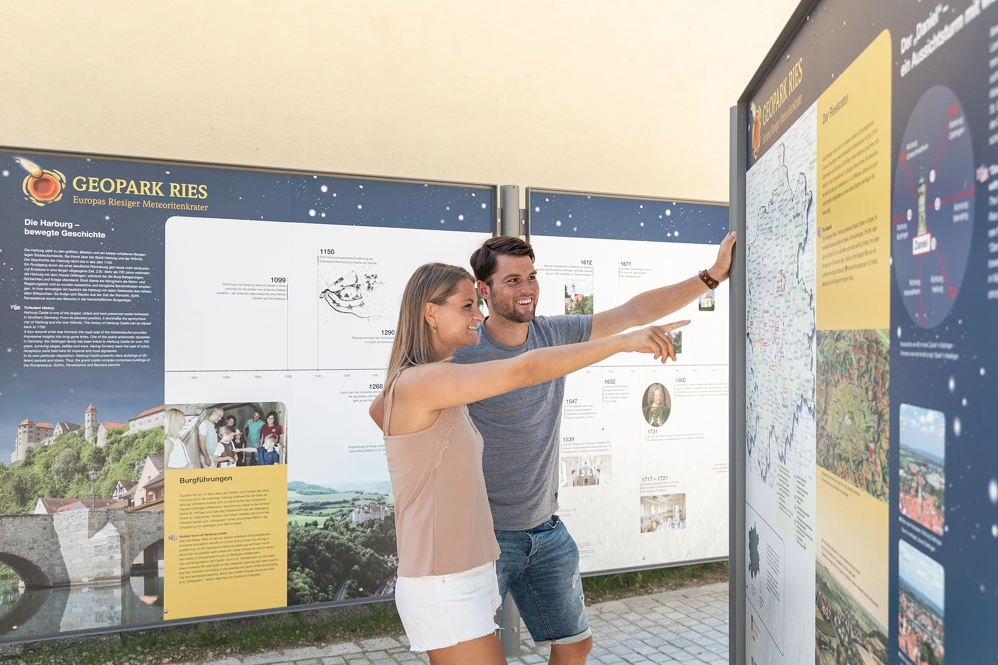 The Harburg Info-Point not only concisely explains the formation of the Ries Crater, its geology and its special features, but also the connection of the UNESCO Global Geopark Ries to ESA and NASA space missions. Interesting information about Harburg’s history and sights as well as the local company Märker enrich the info-panels of the Geopark Info-Point.