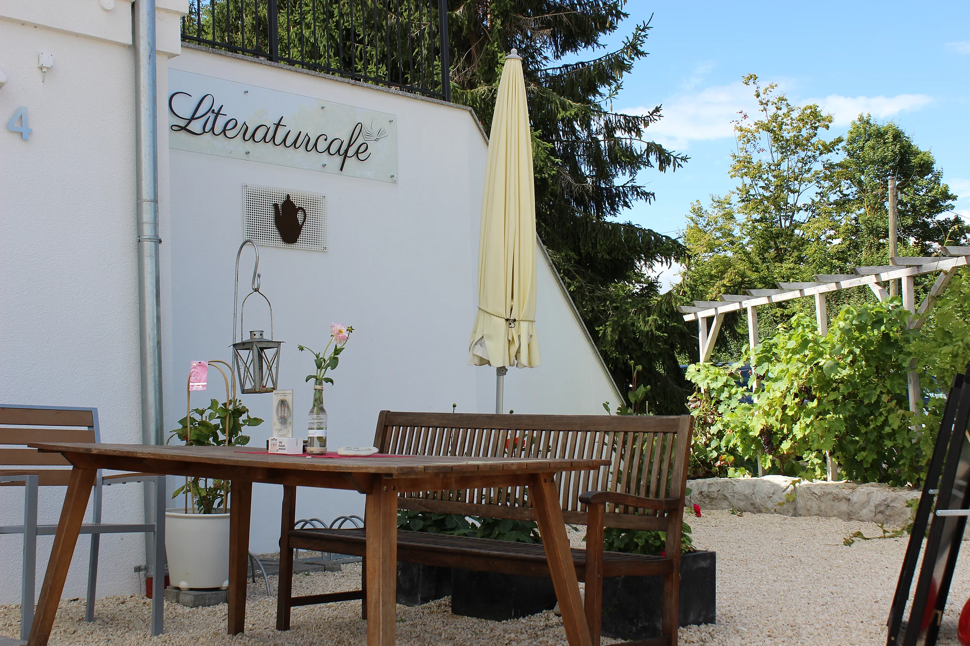 Das Literaturcafé am Erlebnis-Geotop Lindle ist ein wunderbarer Wohlfühlort mit einem herrlichen Weitblick auf die Stadt Nördlingen.