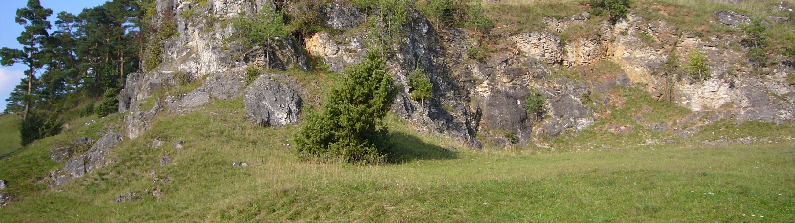 Der Aufschluss liegt ca. 7 km westlich des Kraterrandes. Bei dem ca. 100 m langen Hanganschnitt stehen kuppen- und felsförmige, autochthone Malm-Kalke in Schwamm-Algen-Rifffazies an (Malm Delta – Malm Zeta). Die Kalke sind teils dolomitisiert.