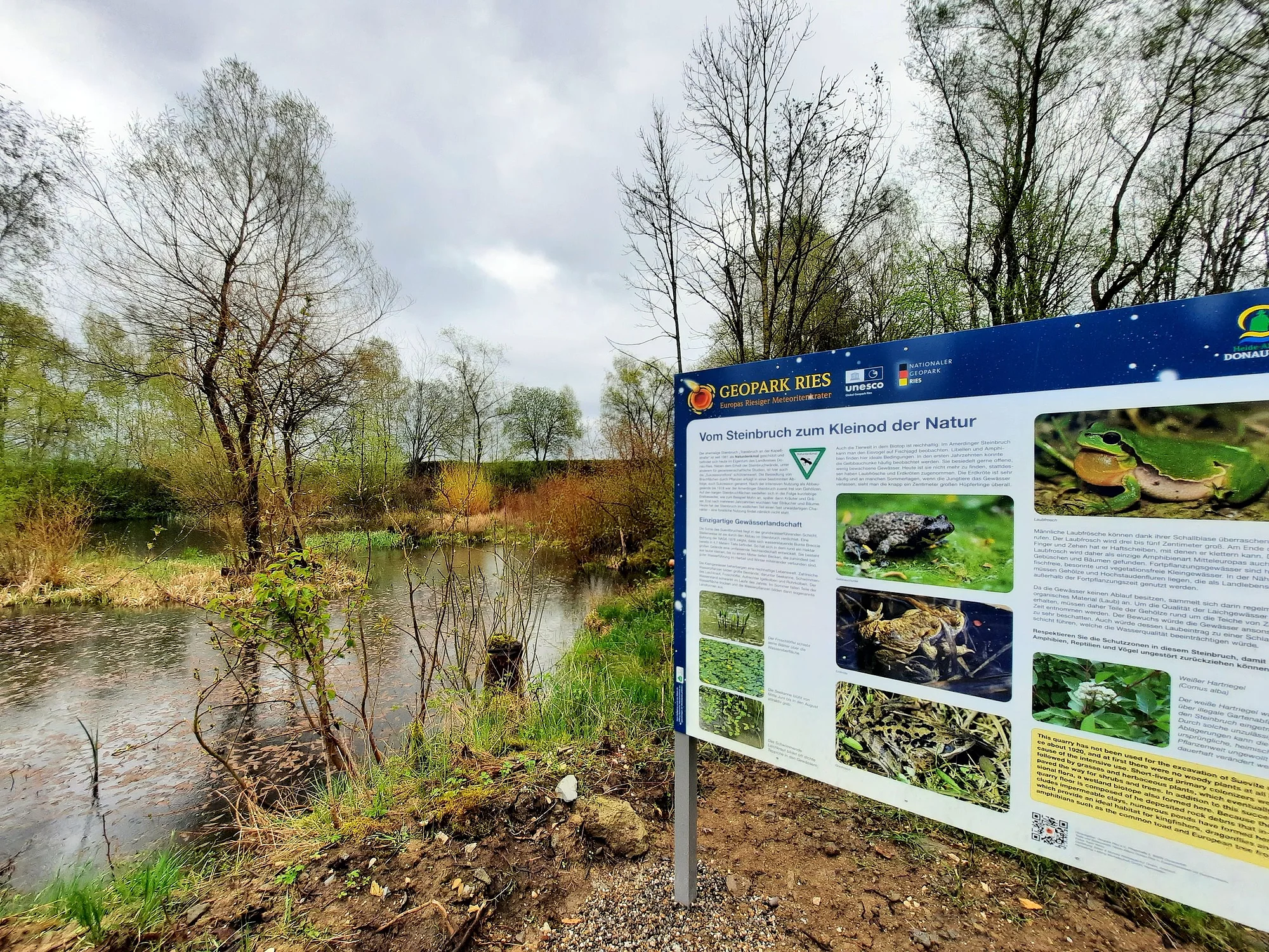 Südöstlich von Amerdingen stehen zwei Ausbildungsarten des Suevits an. Im Norden ist das Gestein dunkel und glasreich, im Süden rinnenartig eingetieftheller und glasarmer, dafür mit hohem Anteil an Deckgebirgskomponenten. Das Steinbruchgelände ist rund einen Hektar groß und umfasst auch große Wasserflächen. Drei Tafeln erläutern Wissenswertes über Geologie, Biologie und Geschichte des Geotops.