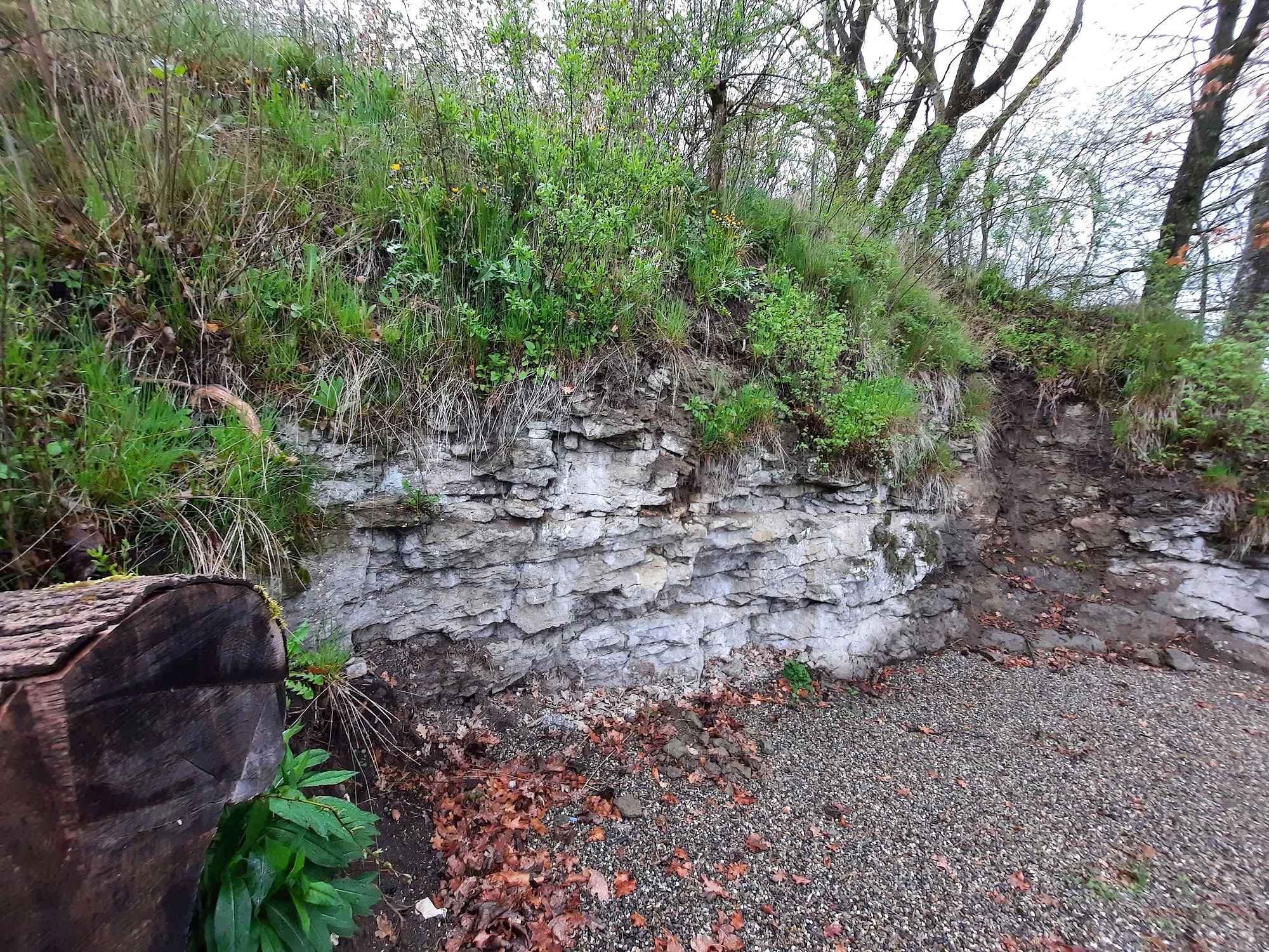 An der Amerdinger St.-Anna-Kapelle kann noch eine niedrige Felswand aus Suevit studiert werden.