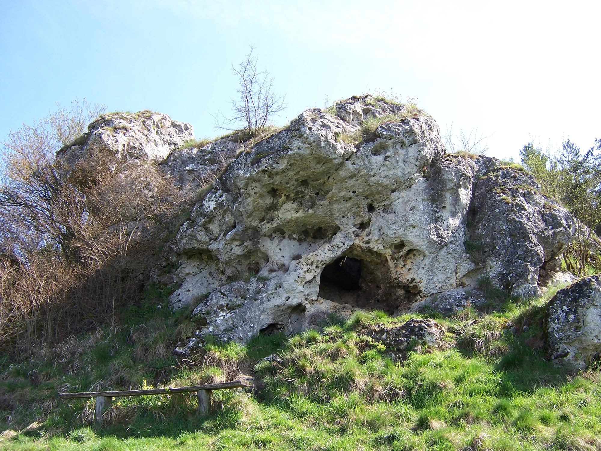 Die Felsgruppe Hohler Stein ragt ca. 700 m westnordwestlich von Hohlenstein aus der leicht ansteigenden Böschung. Die Felsen sind bizarr verwittert und bestehen aus Massenkalken (Massenkalk-Formation, joM) des Oberjura. Darin befindet sich eine kleine Durchgangshöhle mit den Maßen Eingangshöhe 1,2 m, Eingangsbreite 0,5 m und Durchgangslänge ca. 6 m.