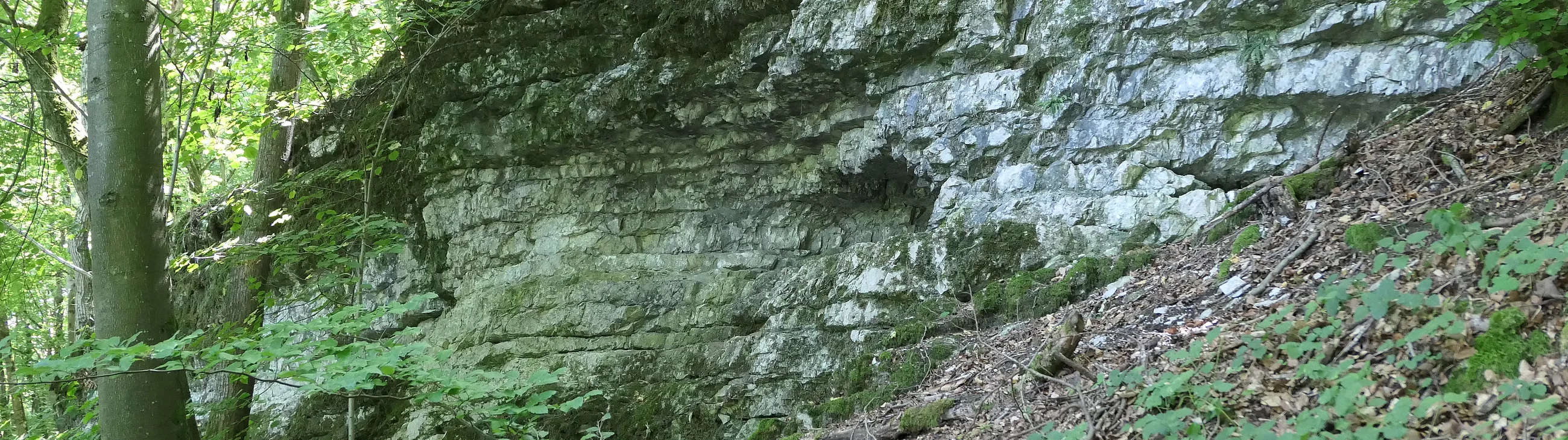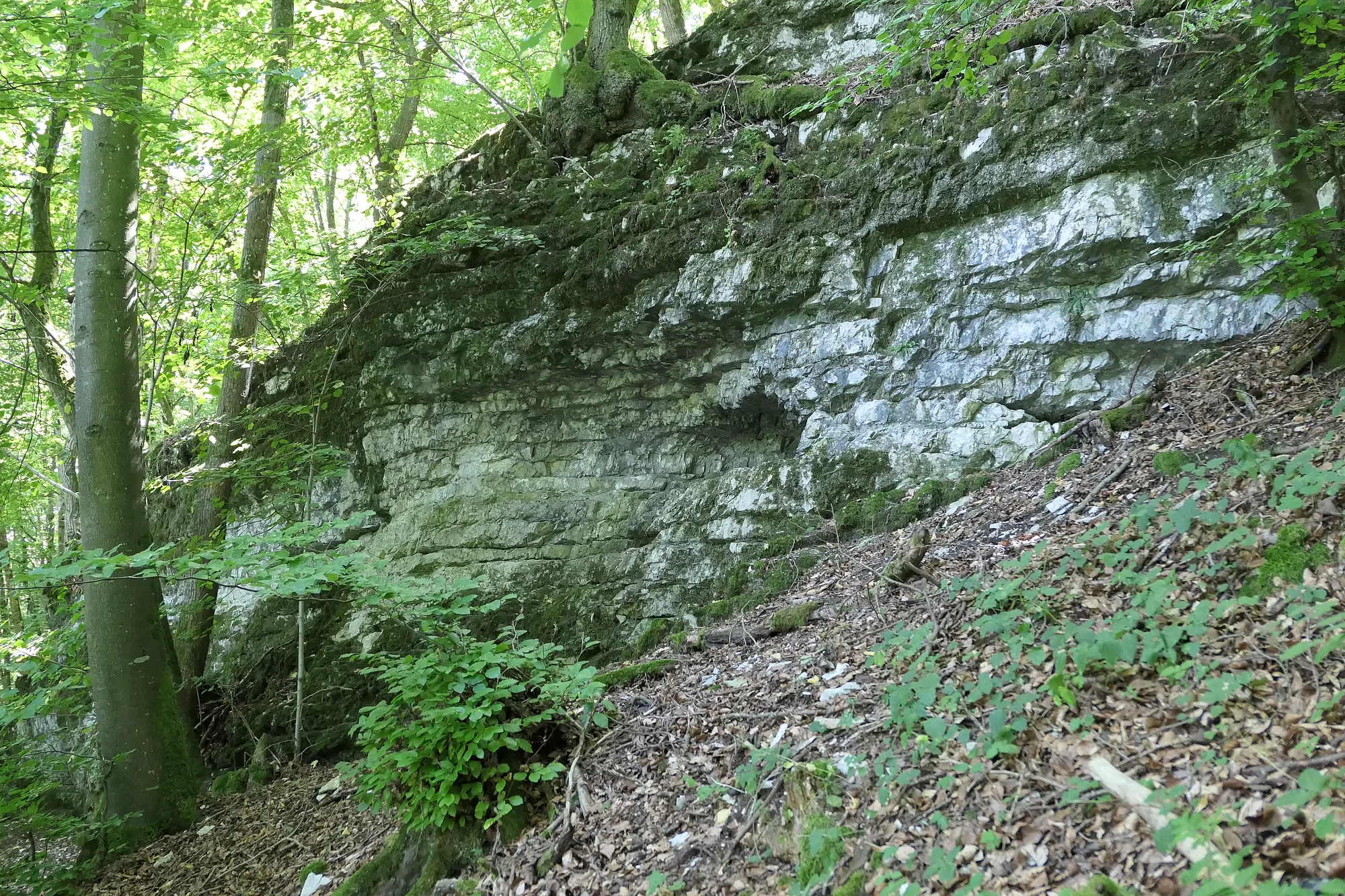 Die Felswand nordwestlich von Stahlmühle aus gebanktem Kalk des Unteren Weißjura (Dietfurt-Formation) liegt nur knapp außerhalb Riesrandes, was sich an der intensiven Zerklüftung bemerkbar macht. Mehrere kleine Höhlen mit schön ausgewaschenen Profilen setzen hier an, verengen sich aber rasch.