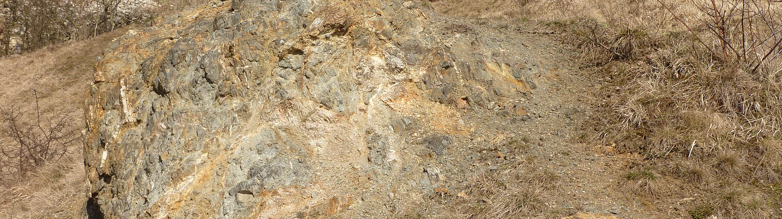Im ehemaligen Steinbruch ist Kristallin aufgeschlossen. Es handelt sich hierbei um einen durch den Ries-Impakt verlagerten Verband von Amphiboliten, Biotit-Plagioklas-Gneisen und zwei Generationen von Graniten, Apliten und Pegmatiten.
