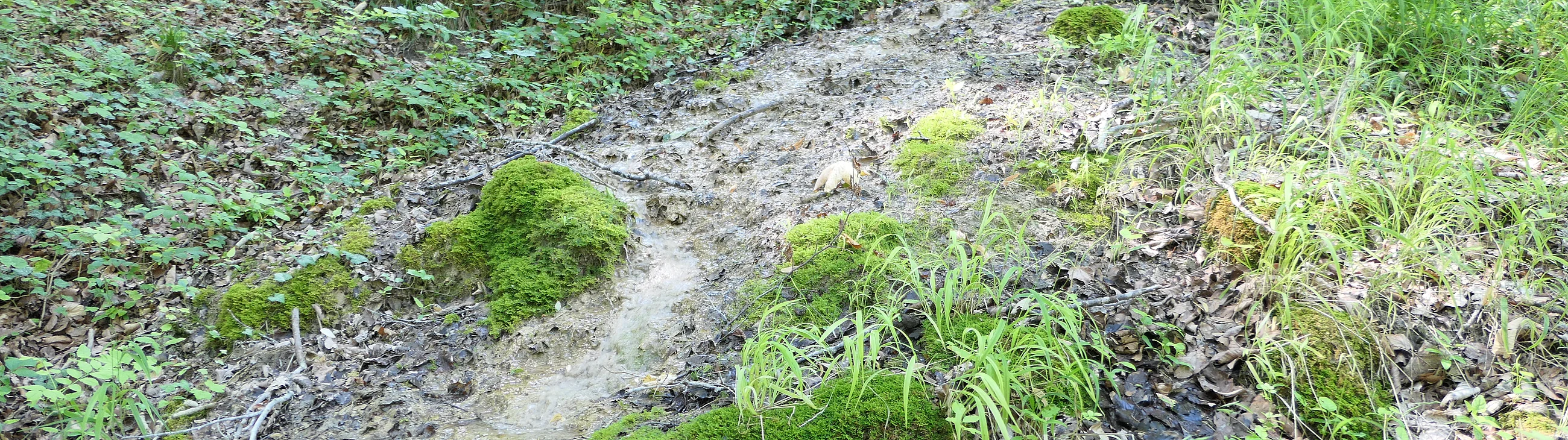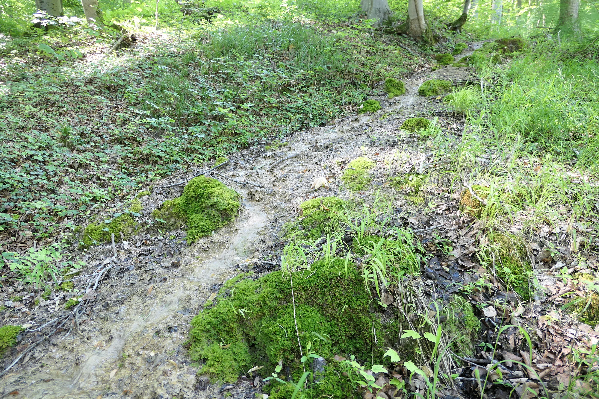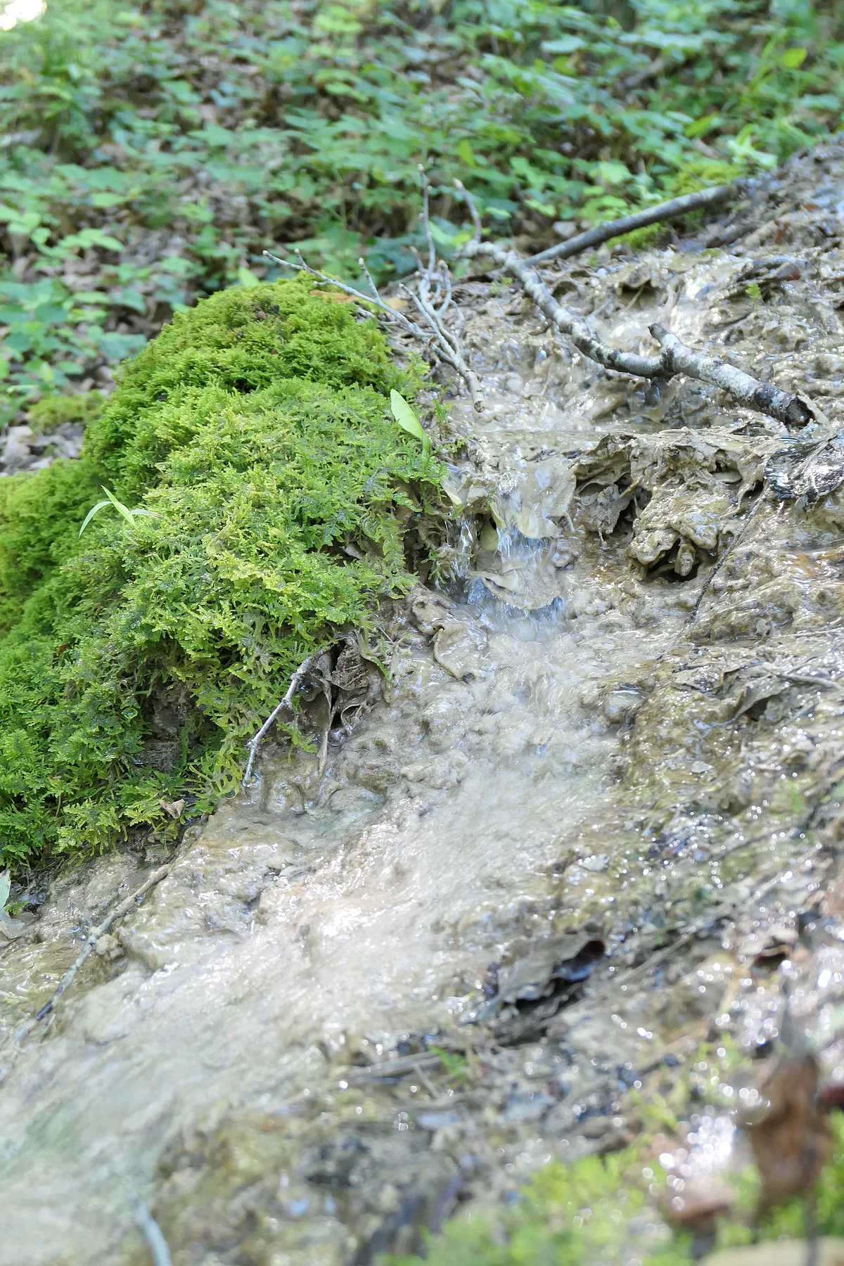Der Bachlauf ist ca. 20 m lang und maximal 10 cm hoch. Die Rinne ist eher eingetieft und mit wenig Kalk ausgekleidet. Die kleine Rinne befindet sich im Entwicklungsstadium.