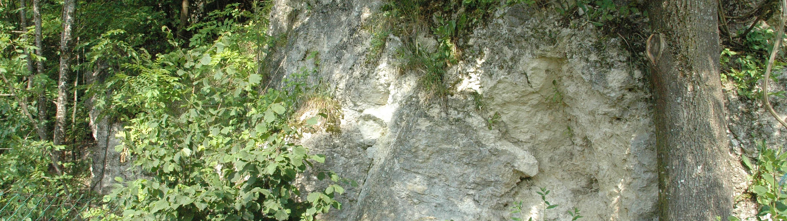 Der Aufschluss in einer überkippten allochthonen Jura-Scholle zeigt im Nordteil eine deutliche Schleppfaltung in gebankten Kalken des Malm Beta und Gamma. Im Süden der Scholle ist das Gestein durch den Ries-Impakt vergriest (intensiv zerbrochen).