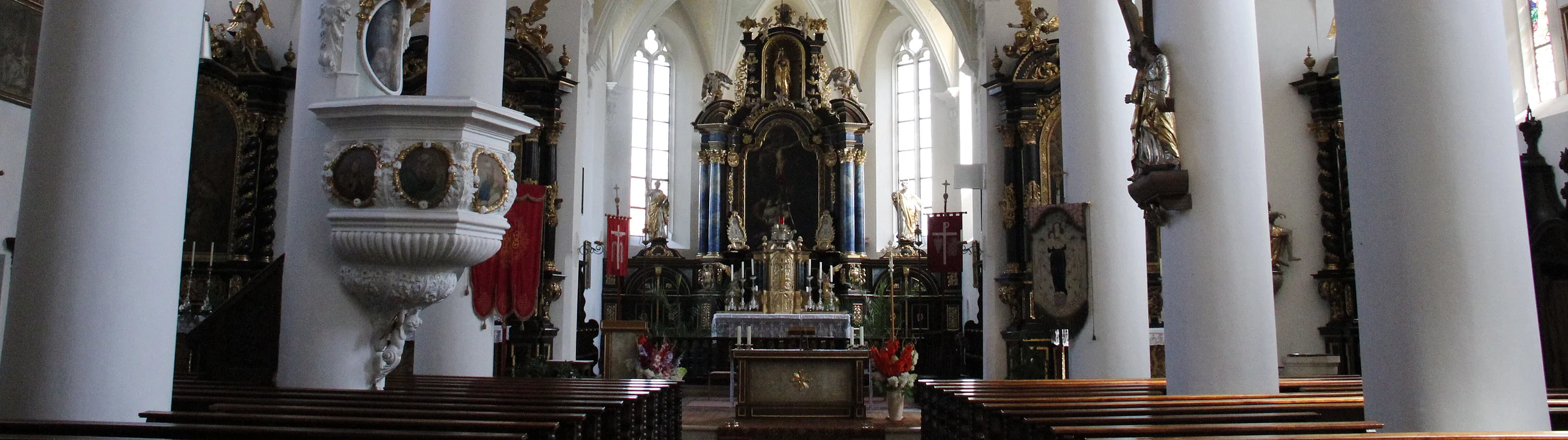 Die Walburgakapelle in der Kirche ist unter einem spätgotischen Netzrippengewölbe aus dem 16. Jahrhundert zu bewundern. Der Altar der Kapelle birgt einen kostbaren Schatz: Die 65 cm hohe Statuette der Heiligen Walburga, die gegen 1700 vom Augsburger Goldschmied Michael Hueter aus Silberblech getrieben wurde. Davor ein weiteres Reliquiar mit einer damals von Eichstätt nach Monheim überführten Walburgisreliquie.