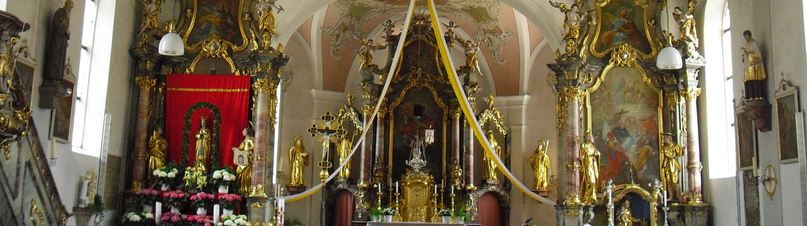 Die Turmuntergeschoße (1623 – 1625) und der heutige Bau (1753) wurden im Auftrag des Klosters Heilig-Kreuz in Donauwörth errichtet. Das Innere zeigt eine Ausstattung im Rokokostil um 1750/60. Das Deckenbild im Chor stammt von Johann Benedikt Reißmüller (1752), Altäre und Kreuzweg (1786) von Johann Baptist Enderle.