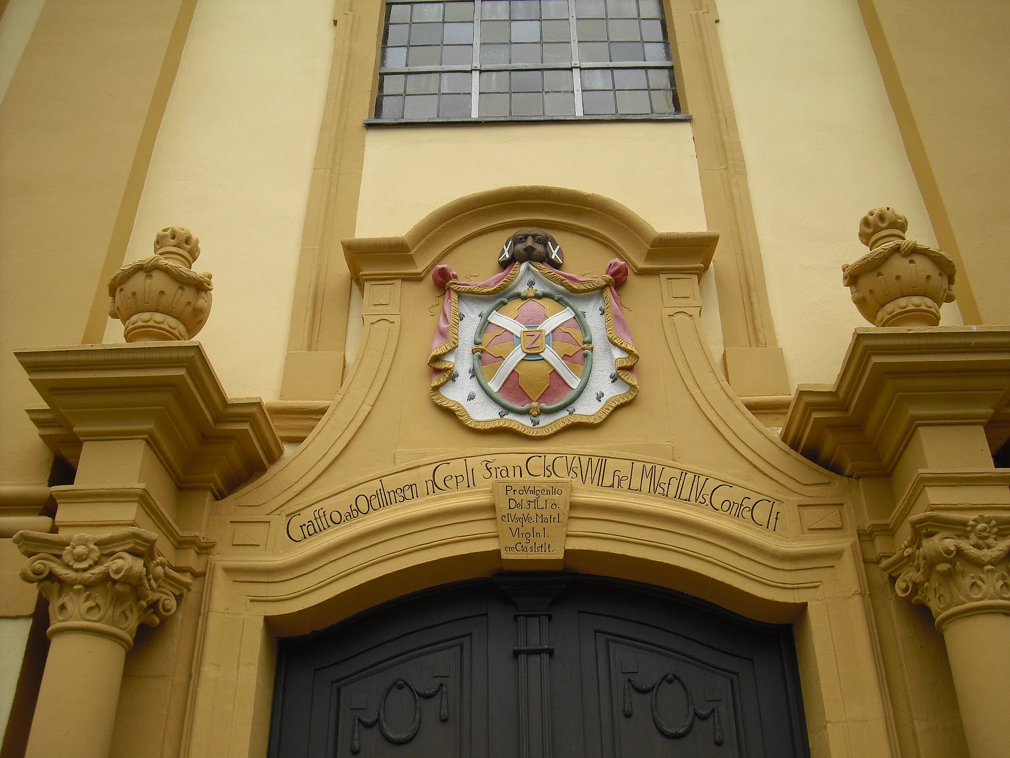 Der Legende nach versank hier im 13. Jahrhundert ein Reiter samt Pferd, später wurde dort ein sogenannter "Totenbaum“ (alamannischer Baumsarg) mit gut erhaltenen Gebeinen, Geld und Äpfeln gefunden. Daher zunächst Errichtung einer Kapelle, welche sich aufgrund der Wundertätigkeit des Ortes bald zur Pilgerstätte entwickelte und zu klein wurde. Im Auftrag Graf Kraft Anton Wilhelm zu Oettingen-Baldern daher 1718 – 1738 Erbauung der heutigen Wallfahrtskirche nach Entwürfen der Gebrüder Gabrieli aus Graubünden als kreuzförmig angelegter Zentralbau mit runder Kuppel in barocker Gestalt, aber klassizistischem Gewand. Die Madonna auf dem Gnadenaltar stammt wohl aus dem 15. Jahrhundert, der legendäre Totenbaum wird in der Sakristei verwahrt.