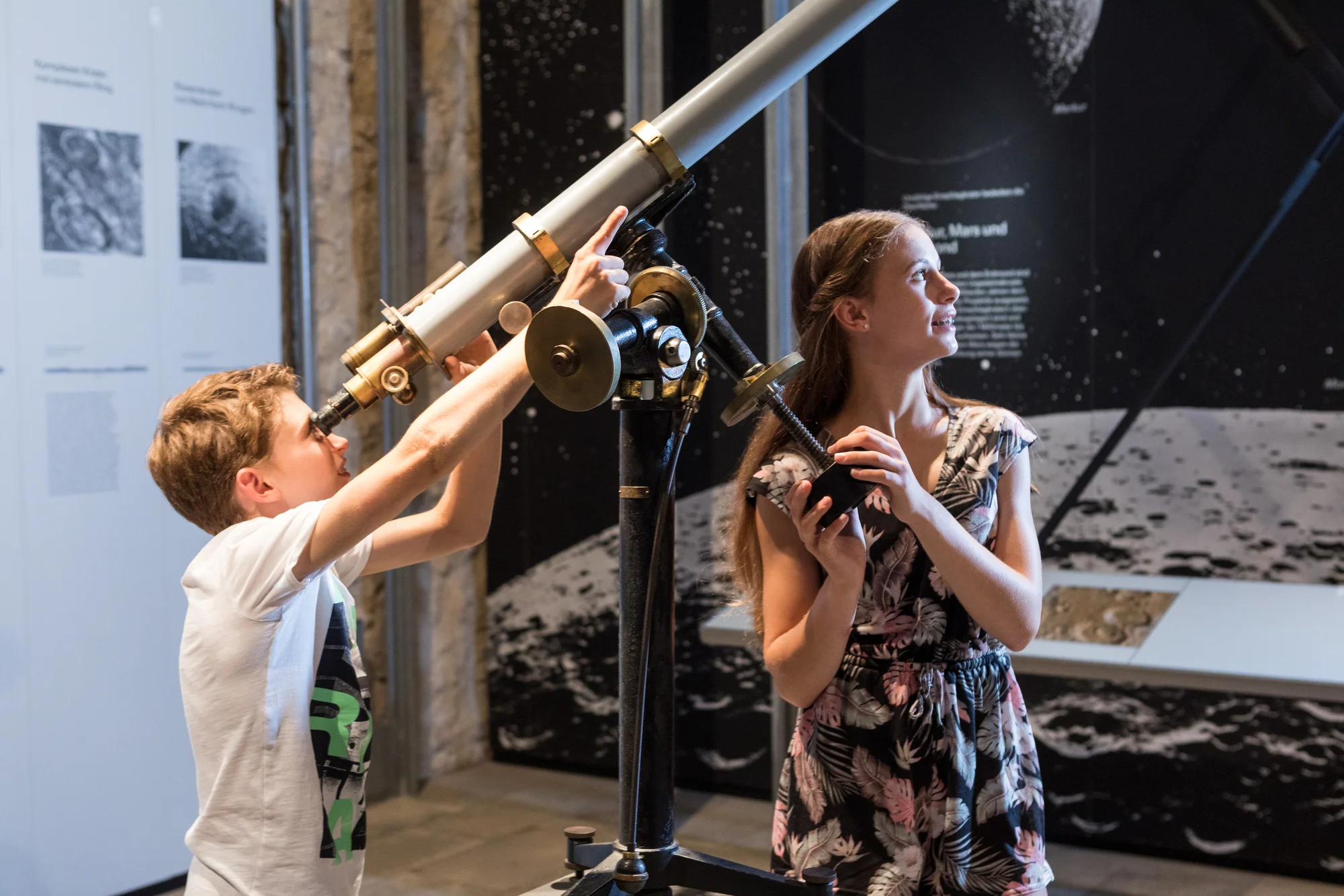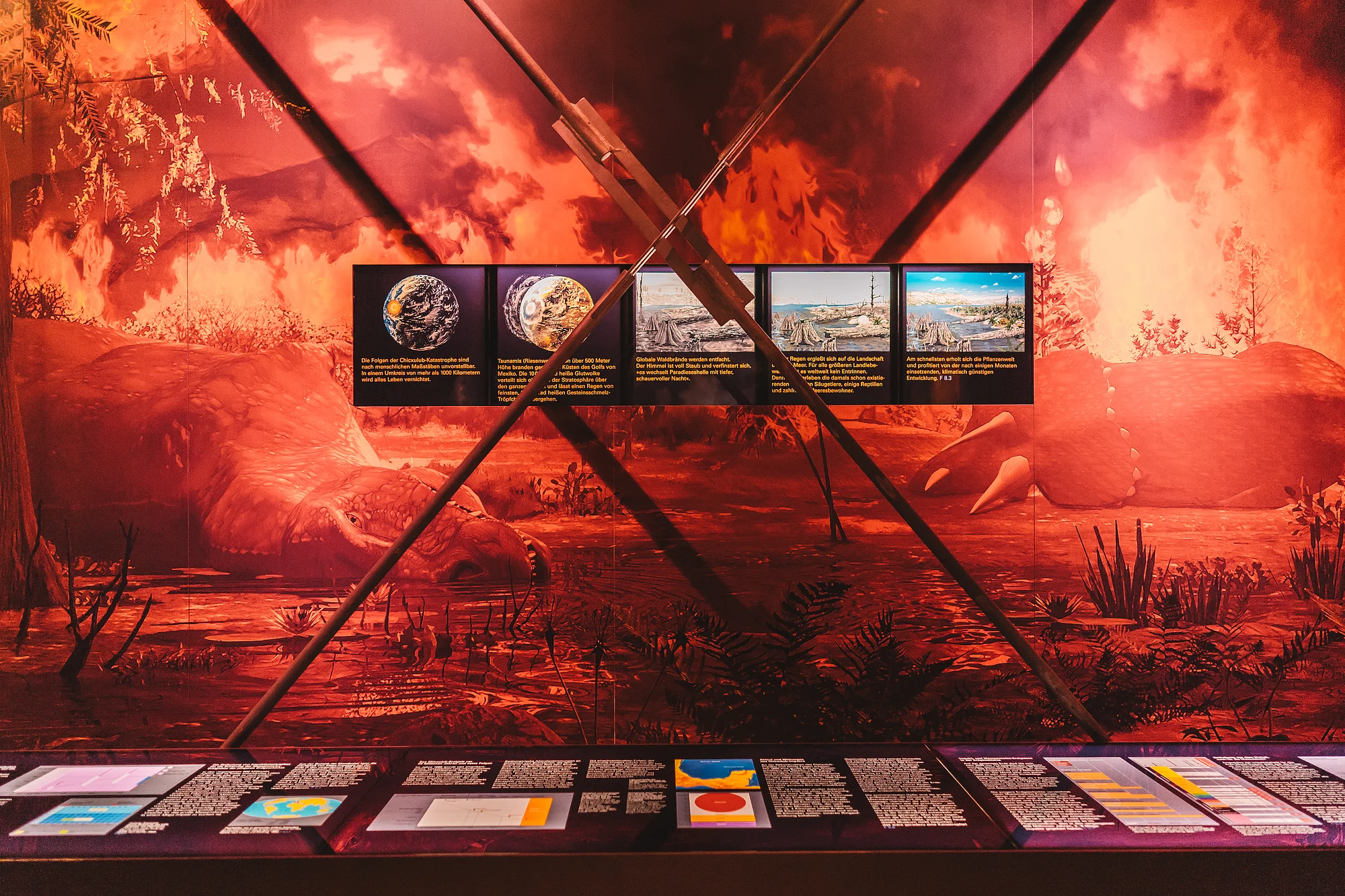 Zahlreiche Exponate, darunter neben Meteoriten und Fossilien auch ein Stück echtes Mondgestein, Texttafeln auf verschiedenen Informationsebenen sowie zahlreiche Multimediaangebote bereiten das Thema kurzweilig auf.