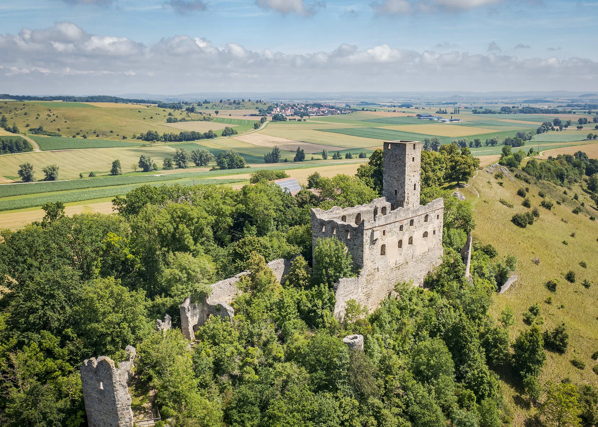 Gut erhalten sind noch Pallas, Bergfried und Teile der Außenmauer. Im Jahre 1634 wurde die Burg durch eine schwedische Reitertruppe teilweise zerstört. Im Inneren erinnert eine Gedenktafel an Friedrich von Hürnheim, der 1268 zusammen mit dem letzen Hohenstaufen Konradin in Neapel enthauptet wurde.