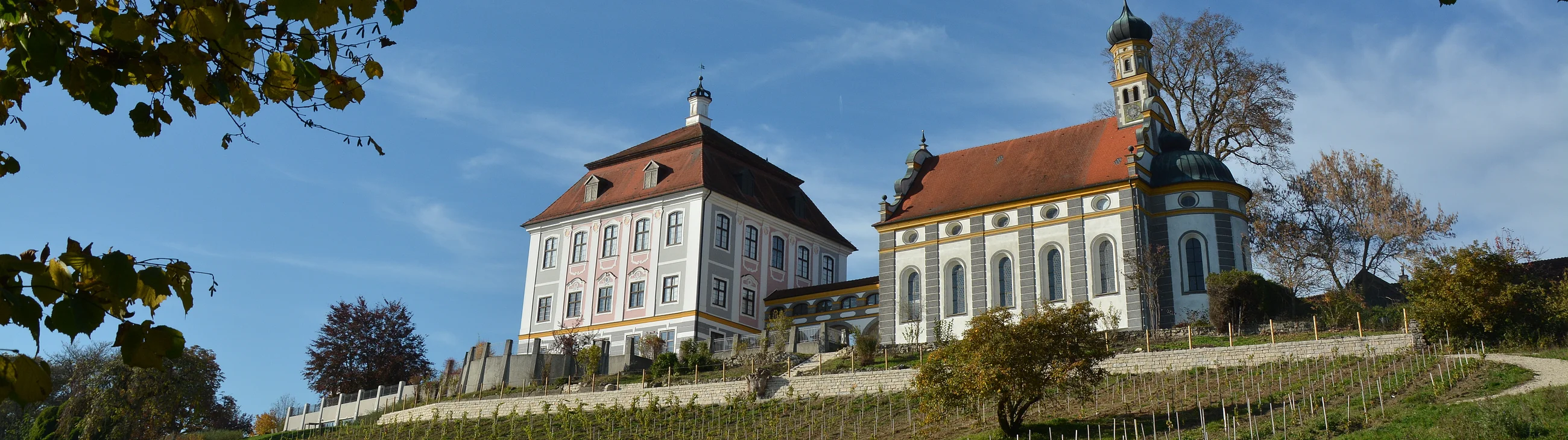 Der repräsentative Sommersitz ist Prototyp eines geistlichen Herrensitzes und entstand in den Jahren 1680 - 1696. Ein zweites Stockwerk wird 1740 - 1751 ergänzt, Festsaal und Räume werden vom Maler Godefried Bernhard Goez mit einem Freskenzyklus ausgeschmückt. In Verbindung mit den Stuckarbeiten des Wessobrunner Meisters Anton Landes gehört das Schloss somit zu den herausragendsten Schöpfungen aus der Blütezeit des bayerischen Rokokos.