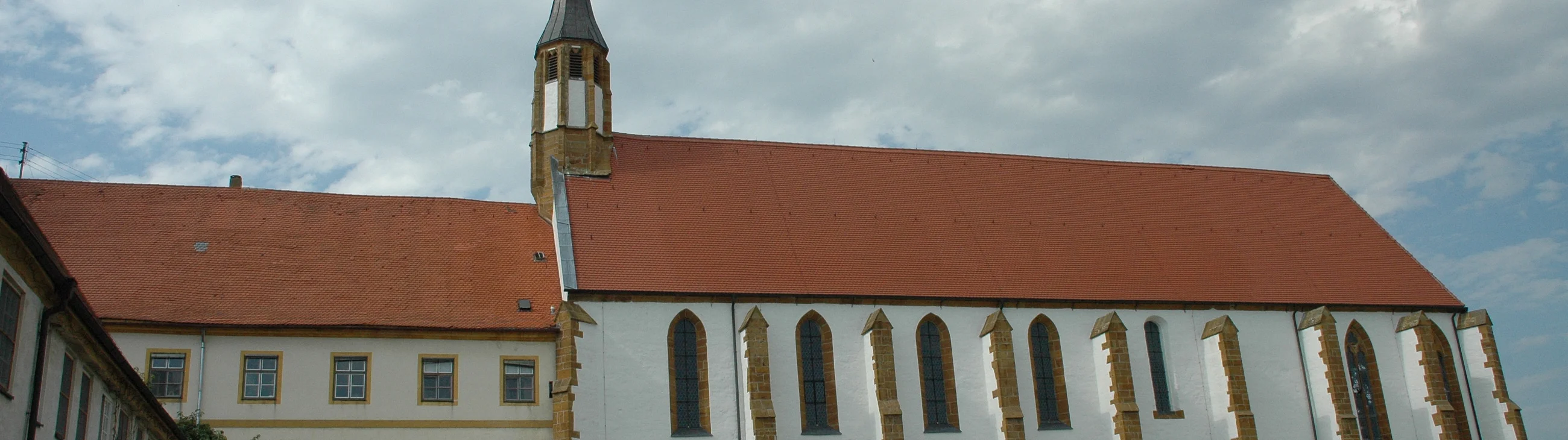 1267 gründete Graf Ludwig III. von Oettingen zusammen mit seinen Söhnen in Kirchheim ein Zisterzienserinnenkloster, das zum eigentlichen Hauskloster und zur wichtigsten mittelalterlichen Grablege dieses Grafengeschlechtes wurde. In der Stiftungsurkunde von 1270 war das Kloster mit einer reichen Grundausstattung versehen worden, zu der die ganze Ortschaft Kirchheim gehörte. Das anfänglich vogtfreie, durch Papst- und Königsbullen von 1273 und 1274 geschützte Kloster sank im Verlaufe des 14. Jhs. in oettingische Landsässigkeit ab. 1803 wurde Kloster Kirchheim als Entschädigung für ehemals linksrheinische Besitzungen dem Fürsten von Oettingen-Wallerstein zugewiesen, der den Frauenkonvent aufhob. Mittelpunkt der am westlichen Ortsende stehenden Frauenzisterze ist die Klosterkirche Mariae Himmelfahrt, mit deren Bau schon vor 1280 begonnen worden war. Der heutige, etwa 50 m lange kreuzgewölbte Saalbau stammt allerdings erst aus dem frühen 14. Jh. Eine tiefe West-Empore diente als Nonnenchor. In der darunterliegenden Stephanskapelle befindet sich ein Altarciborium des 14. Jhs. sowie zwei Äbtissinnen-Grabsteine des 16. Jhs. 1662 begann man mit der prächtigen barocken Ausgestaltung der Kirche. Von besonderem kunst- und kulturgeschichtlichen Wert sind einige spätgotische Grabmäler (hinter dem Hochaltar von 1756), von denen zwei herausgehoben seien (Abb.1): Der Klostergründer Graf Ludwig III. (gest. 1279) mit Beckenhaube, Kettenhemd und darübergetragenem, engaliegendem ledernen Lentner ist gegürtet mit Langschwert und Dolch und trägt das Kirchenmodell in beiden Händen. Auch seine Gemahlin, Adelheid von Hirschberg (gest. 1277), in langem Kleid und modischer Rüschenhaube, hält ein Kirchenmodell in der Hand. Beide Steine zeigen noch Reste der alten originalen Bemalung. Die Randinschrift datiert die Anfertigung beider Grabfiguren in das Jahr 1358. Für die späte Zeitstellung - rund 80 Jahre nach dem Ableben des Stifterpaares - spricht auch die Kleidermode der Gräfin und die der 50er Jahren des 14. Jhs. aufkommende neuartige Rüstung des Grafen mit dem Lentner, der den älteren "Spangenharnisch" ablöste. Von den zweigeschossigen gotischen Konventbauten, die sich südlich an die Kirche anschlossen, ist nicht mehr viel erhalten geblieben. Bemerkenswert ist einzig die Stiftskapelle mit Kreuzrippengewölbe (um 1300), an deren Nordseite sich der erhöhte Frauenchor mit einem qualitätsvollen Doppelgrabmal der Äbtissin Kunigunde v. Heideck und ihre Schwester Anna (um 1400) befindet. Den ausgedehnten Klosterbezirk umgibt noch heute eine vollständig erhaltene Mauer, die man im Norden durch das Klostertor (1723-24) betritt. Unter den z.T. noch stehenden barocken Kloster- und Wirtschaftsgebäuden ist vor allem der westlich an die Klosterkirche angebaute stattliche Abteiflügel von 1682-83 zu erwähnen.