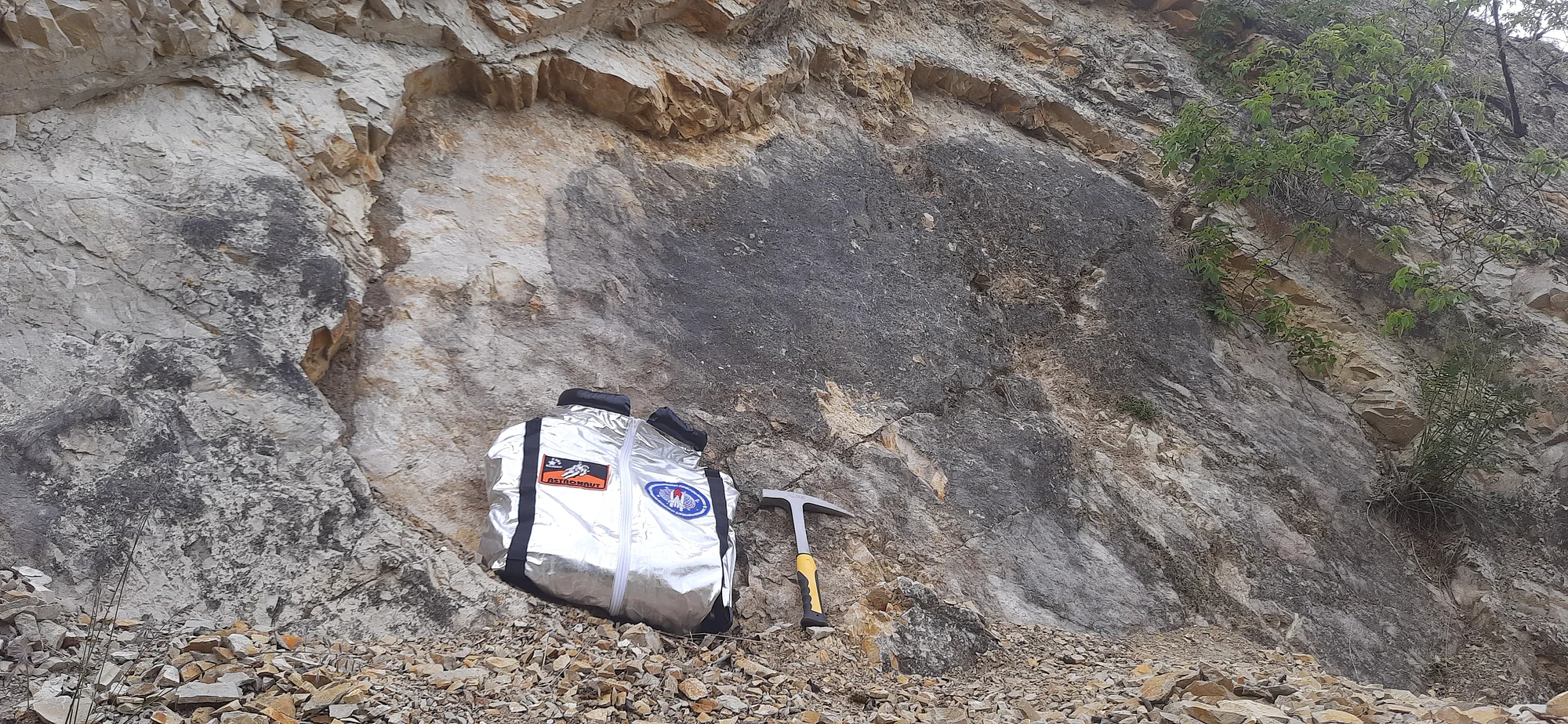 Von Wemding aus fahren wir nach Polsingen (roter Suevit), Otting (Suevitbruch, heute Biotop) und nach Gundelsheim (Schliffspuren im Gestein)