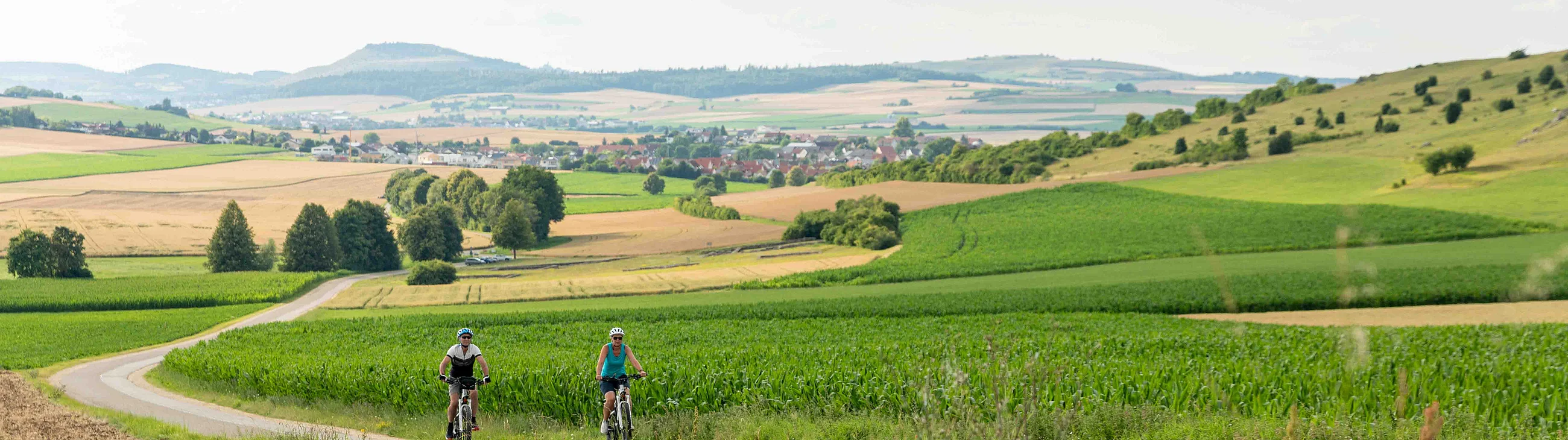 Versatile day-long and round-trip tours offer bicyclists diverse routes in the Geopark Ries. Bicyclists enjoy the delightfully pleasant paths in the Ries basis and along the Danube—while more demanding bike trails to the ridges of the Swabian and Monheimer Alb promise special touring experiences.