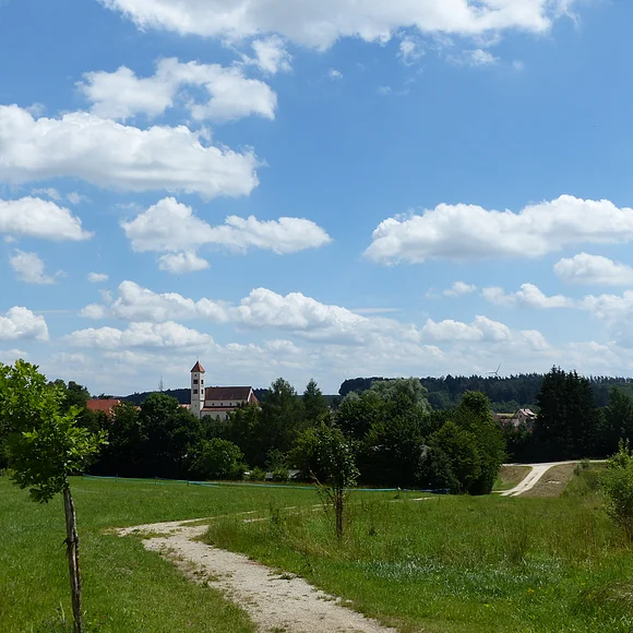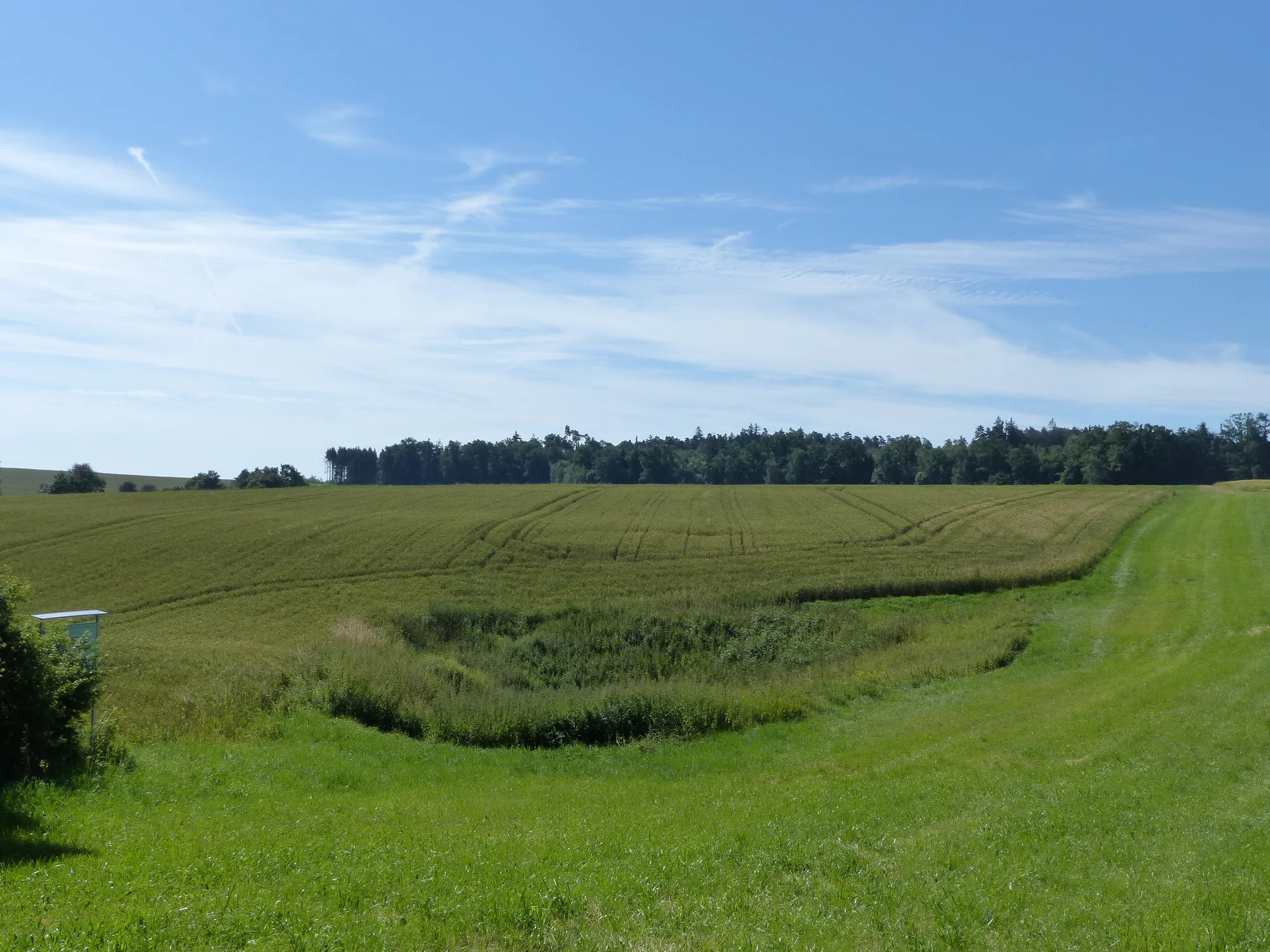 Der Parkplatz am Freibad in Tagmersheim ist Ausgangspunkt unserer Wanderung auf dem Dolinenlehrpfad um Tagmersheim und Rögling, bei der geologische Phänomene der Monheimer Alb auf sechs Infotafeln erklärt werden.