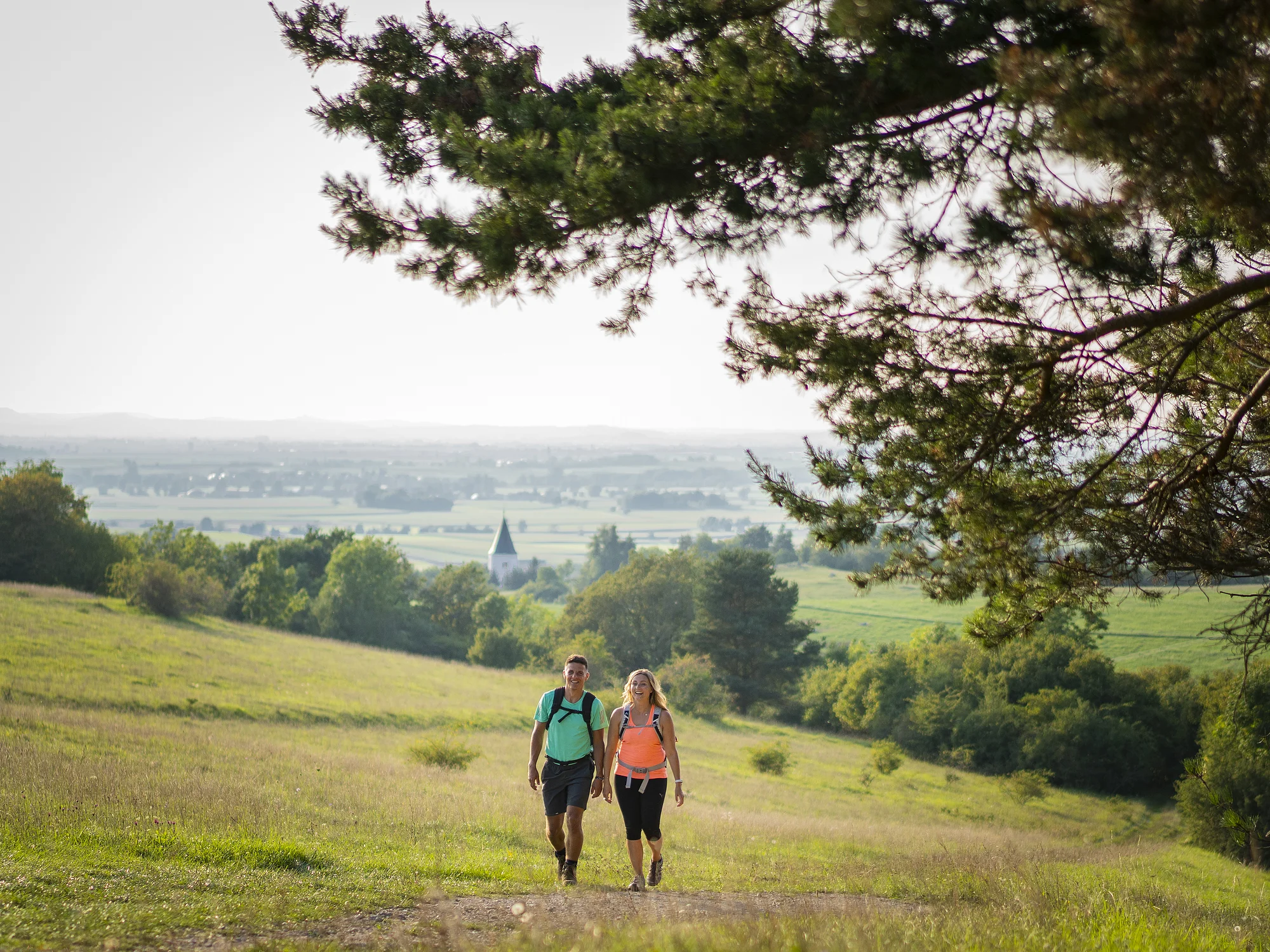 Schöne Ausblicke und interessante Einblicke rund um Huisheim sind auf dieser Tour zu erleben. Wir starten am Rathaus in Huisheim und passieren den nahen Dorfladen mit Café. Den Ort verlassend wandern wir auf das Mähhorn mit typischem Magerrasen und herrlicher Aussicht auf das Ries. Auszumachen sind der Nördlinger Kirchturm „Daniel“ und der Ipf, eine markante Erhebung mit flachem Gipfelplateau. Weiter geht es über Graswege, an schattigen Waldrändern entlang und durch ein Wäldchen. Nach einem kurzen Stück an der kaum befahrenen Straße schwenken wir an einem Feldkreuz zu einem Damwildgehege ab. Mit Blick auf die Olachmühle und zum alten Pfarrdorf Mündling wandern wir am Waldrand entlang. Bald darauf erreichen wir die Olachmühle und den idyllisch gelegenen Silbersee. Nun wandern wir bergauf auf die Anhöhe Gosburg, auf der sich eine prähistorische Befestigungsanlage befand. Nach einem Stück durch landwirtschaftliche Flur und Wald gelangen wir zu einer Mariengrotte, die zu einer meditativen Rast einlädt. Über einen Schotterweg und am Waldrand entlang mit Blick über Gosheim und das Ries geht es weiter bis zu einer kleinen Kapelle.