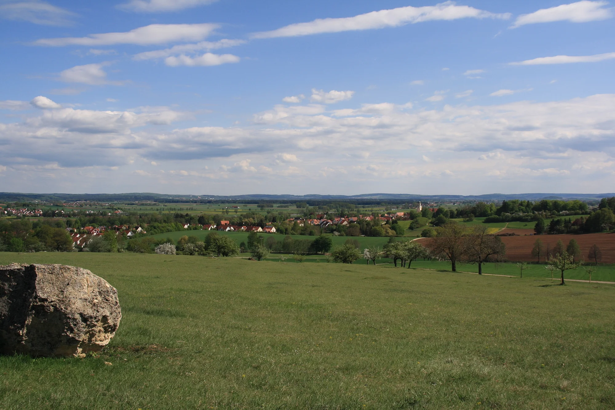 Wir starten unsere Tour am Krankenhaus Oettingen und wandern von dort mit herrlichem Riesblick zunächst auf halber Höhe am Riesrand entlang. Dann geht es zur Anhöhe Rossfeld hinauf und weiter über Wiesen und Felder zum Weiler Lohe. Hier eröffnet sich erstmals der Blick auf das Jagdschloss Hirschbrunn der Fürsten von Oettingen-Spielberg.